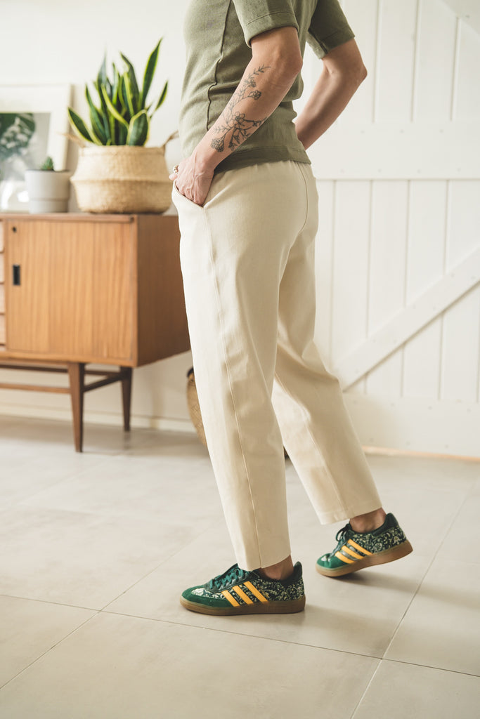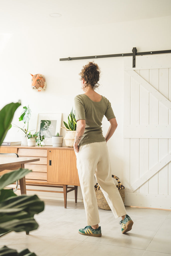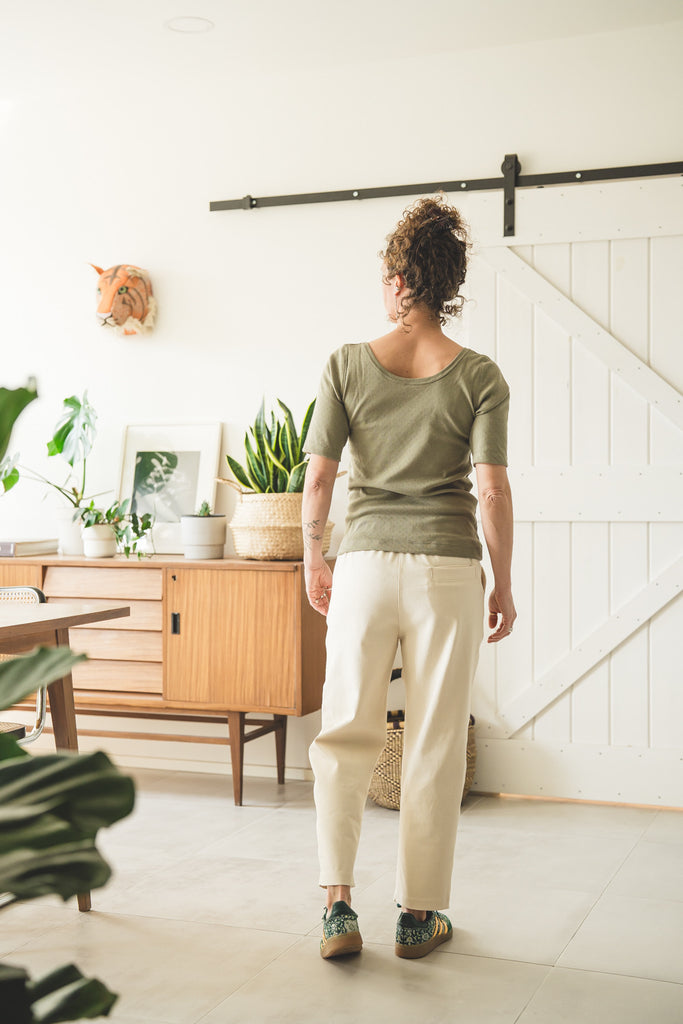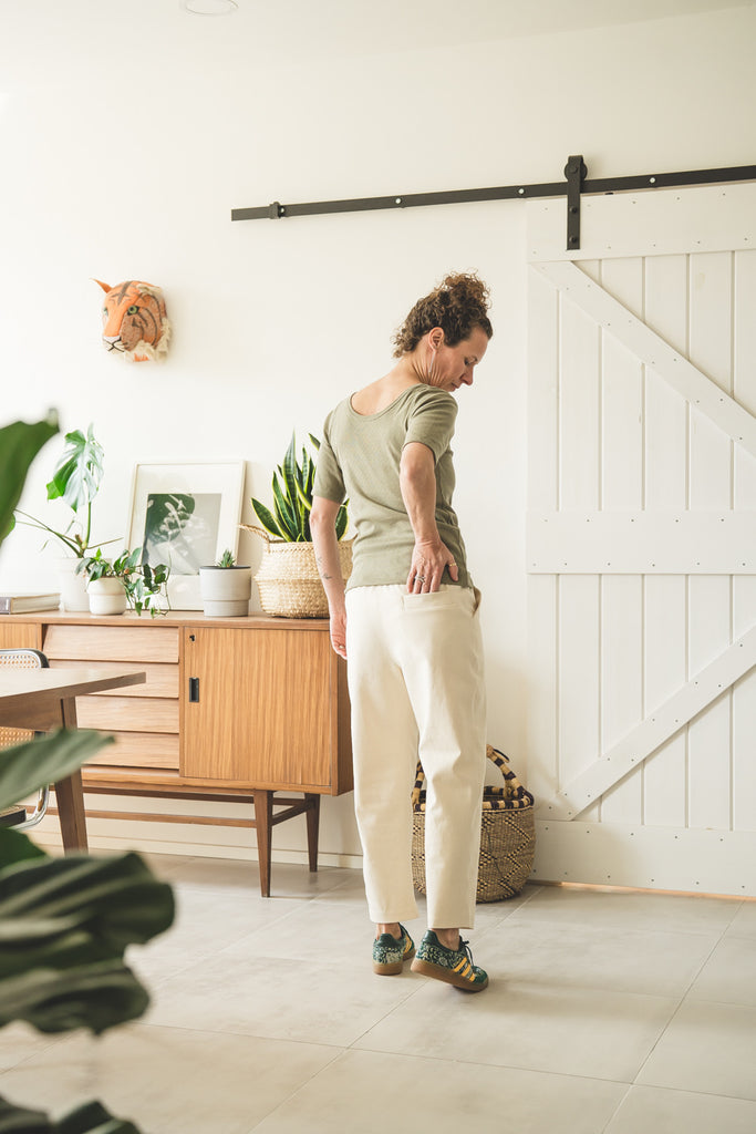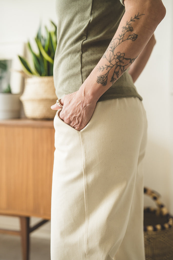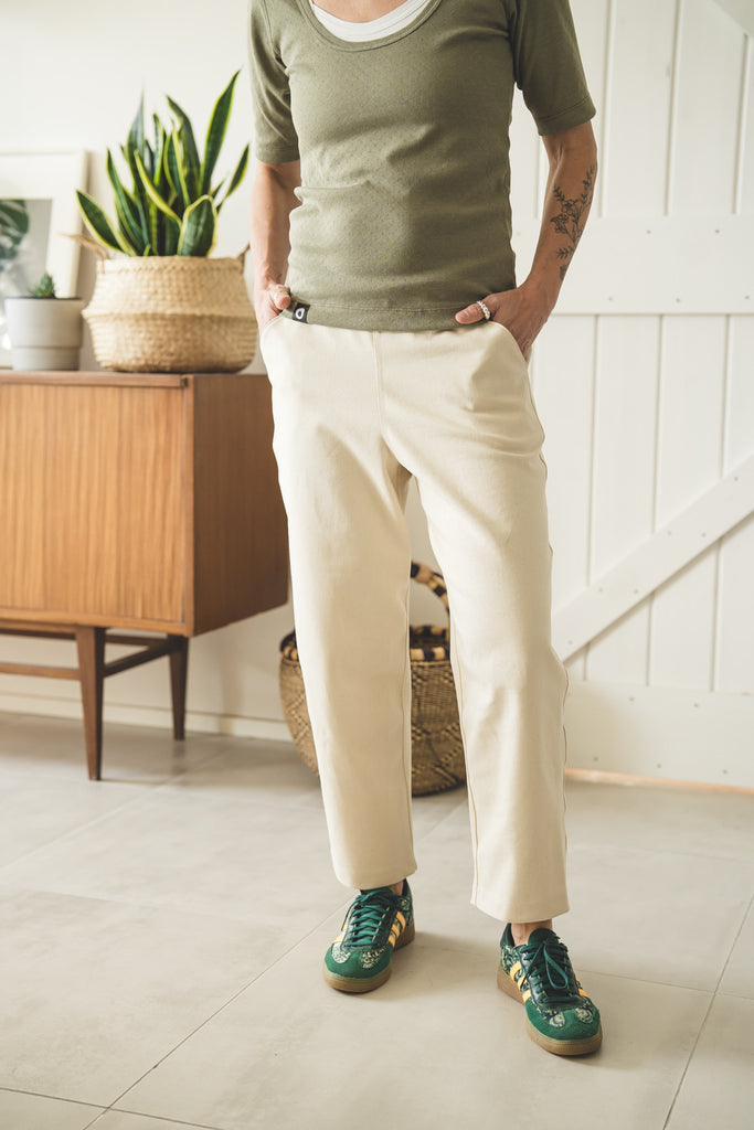 Il nostro YogaPants è il capo più classico tra quelli proposti in questa Special Edition. Modello a sigaretta con due tasche laterali e una tasca a filetto sul sedere. In vita ha un comodo elastico. Ovviamente anche il tuo YogaPants avrà le cuciture ripassate con la macchina da copertura a 4 fili.