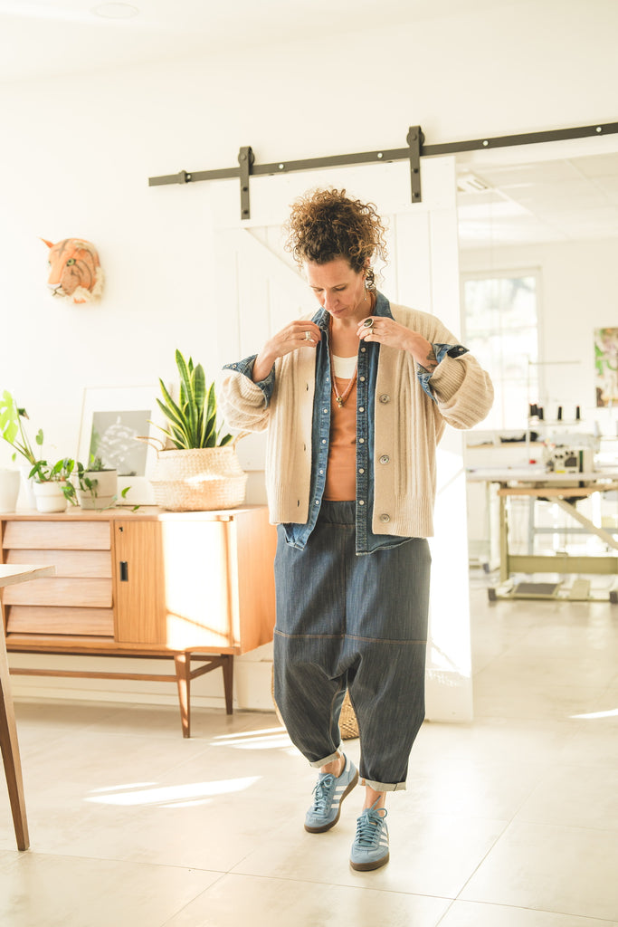 "Adoro il look da workwear che il denim conferisce ai nostri modelli. E sono molto felice di aver trovato un fornitore italiano, per poter garantire l'equità nella catena di produzione a partire dalla qualità del tessuto".