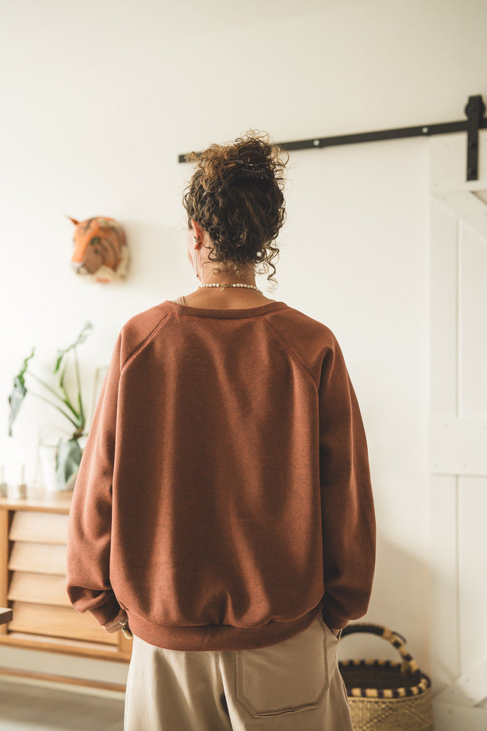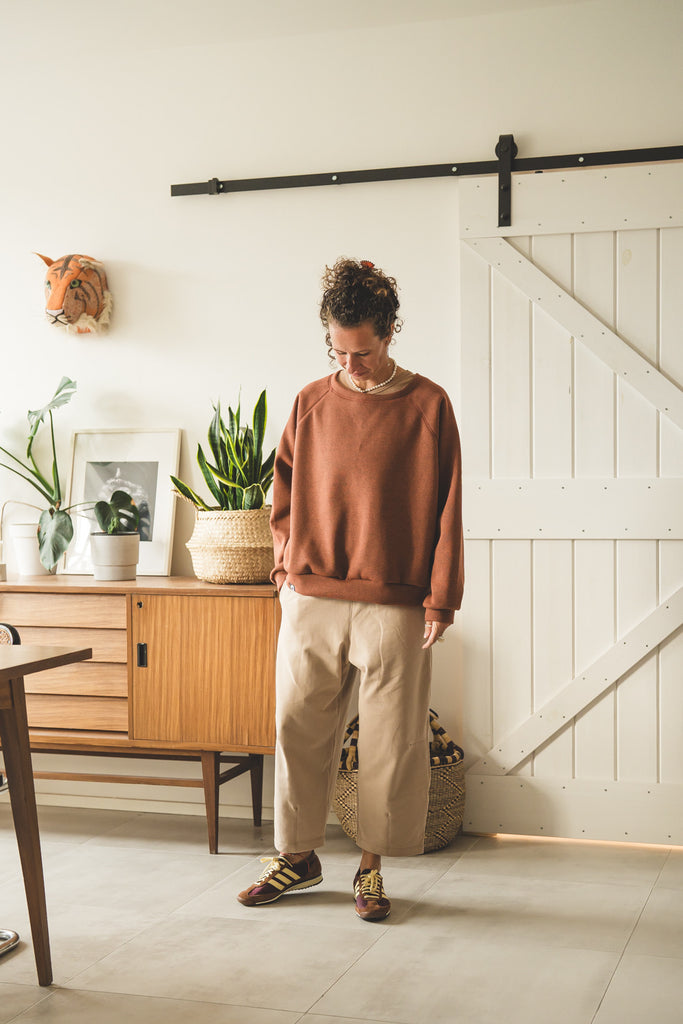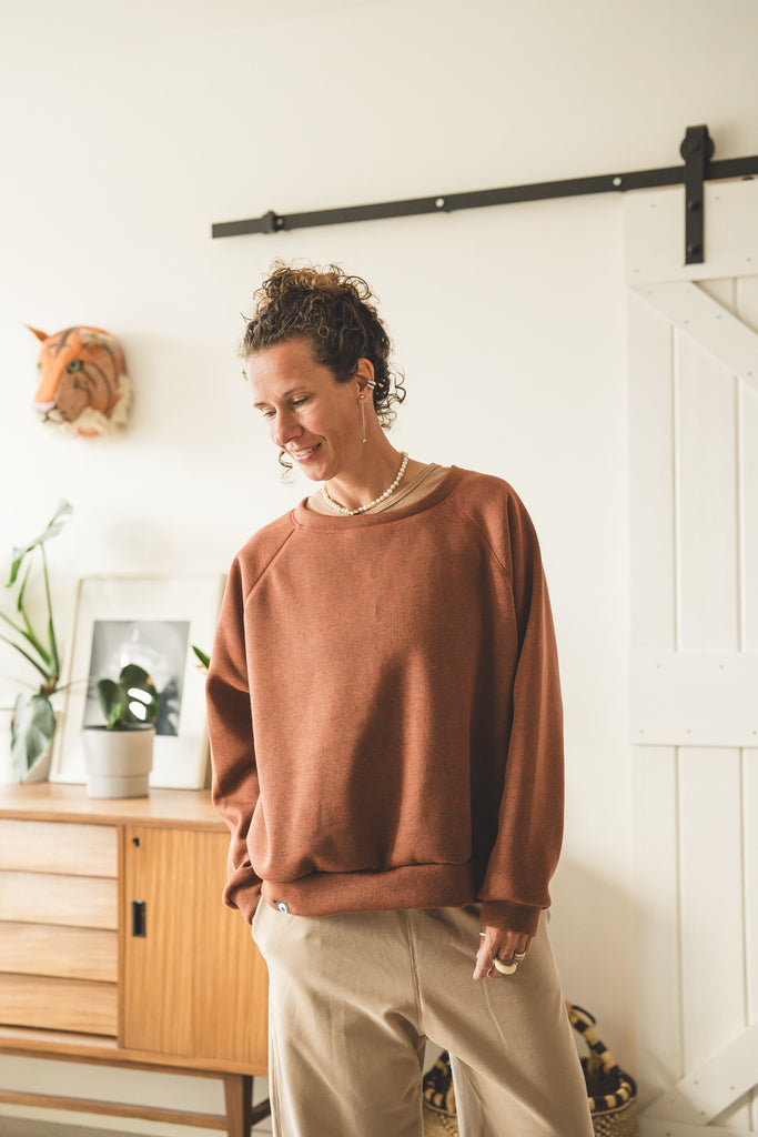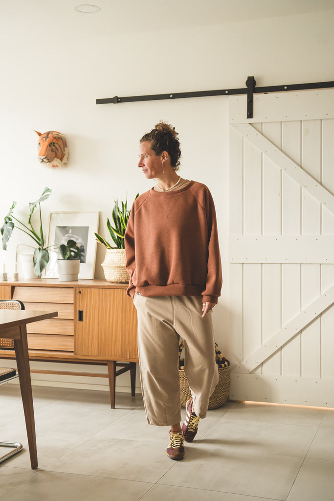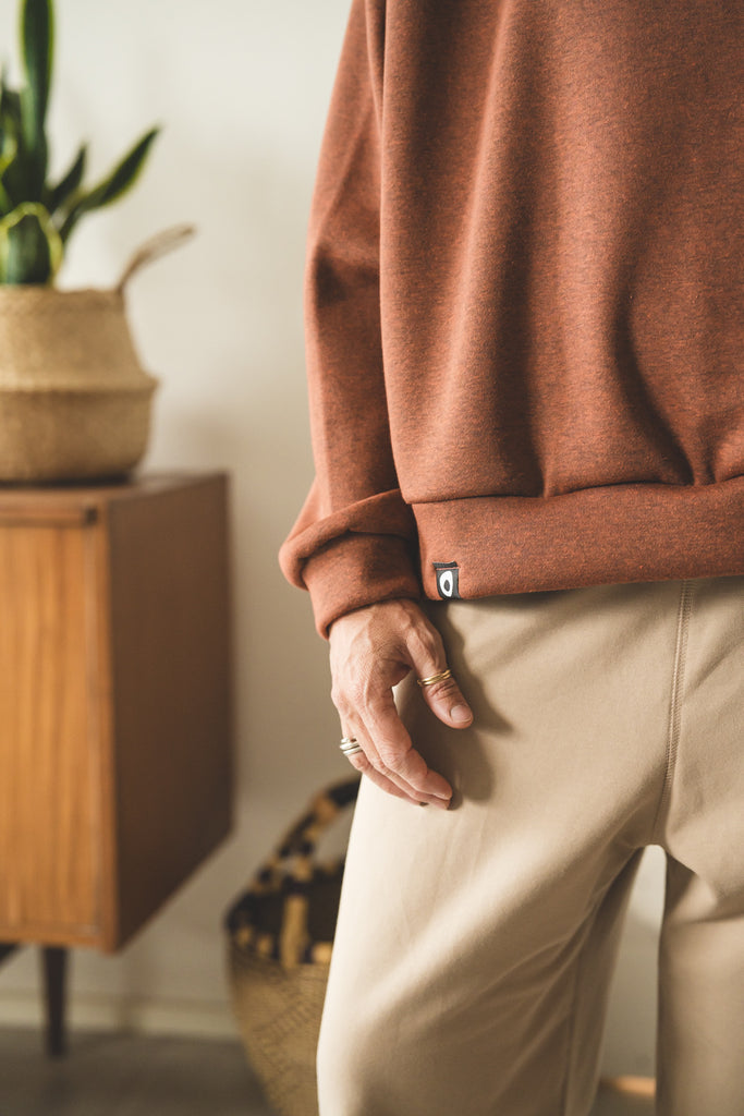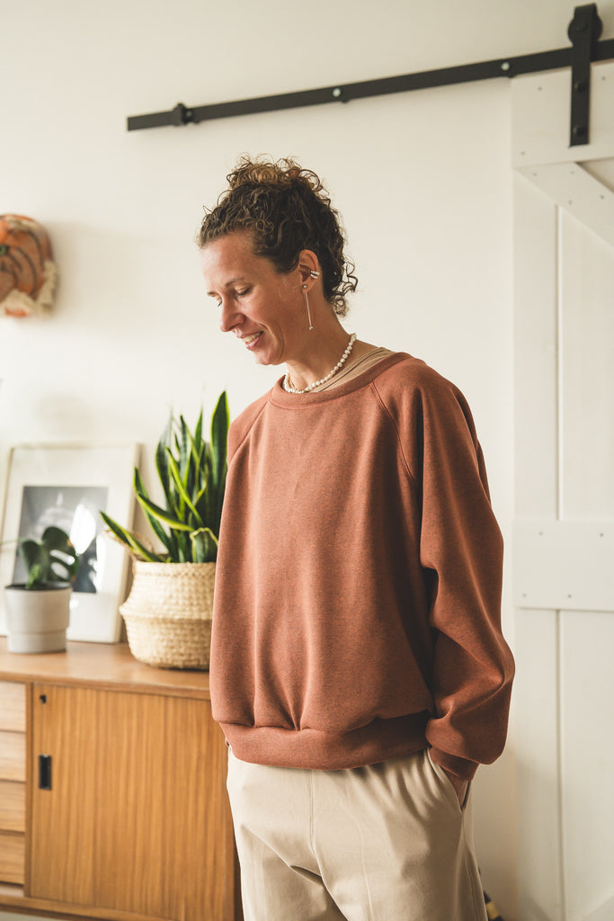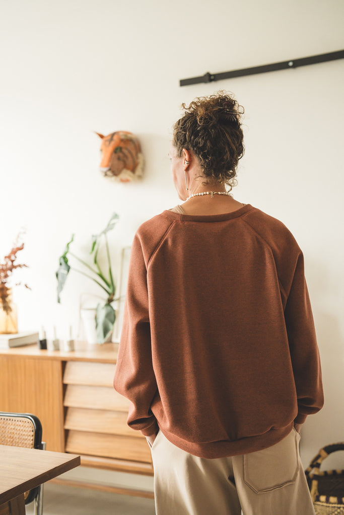 La /'ampjo/ - la nostra felpa del look OVER. L'abbiamo voluta con linee essenziali, ha le maniche raglan, nessuna stampa e ha una curva leggermente più lunga dietro che davanti. Un capo che ti mette a tuo agio. Ti coccola. Ti tiene sotto la sua ala.