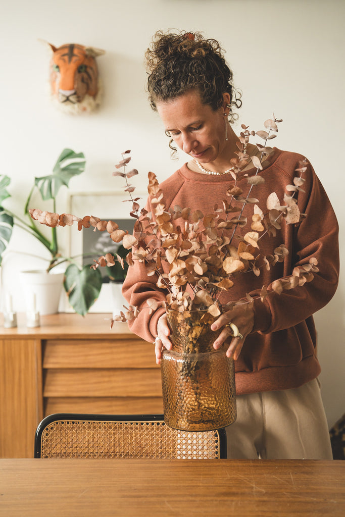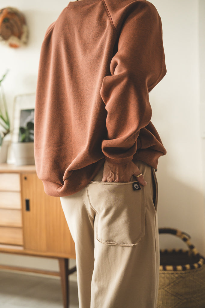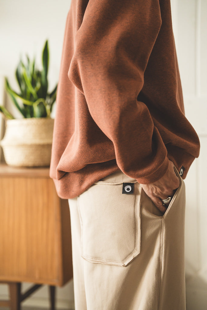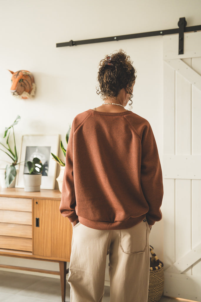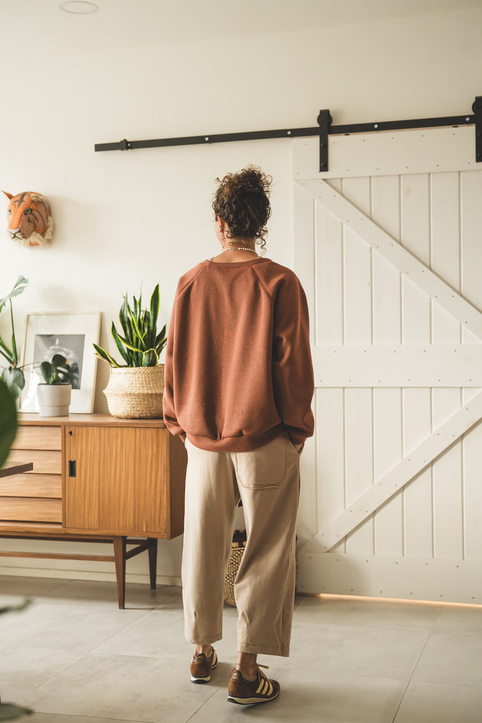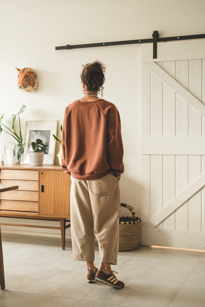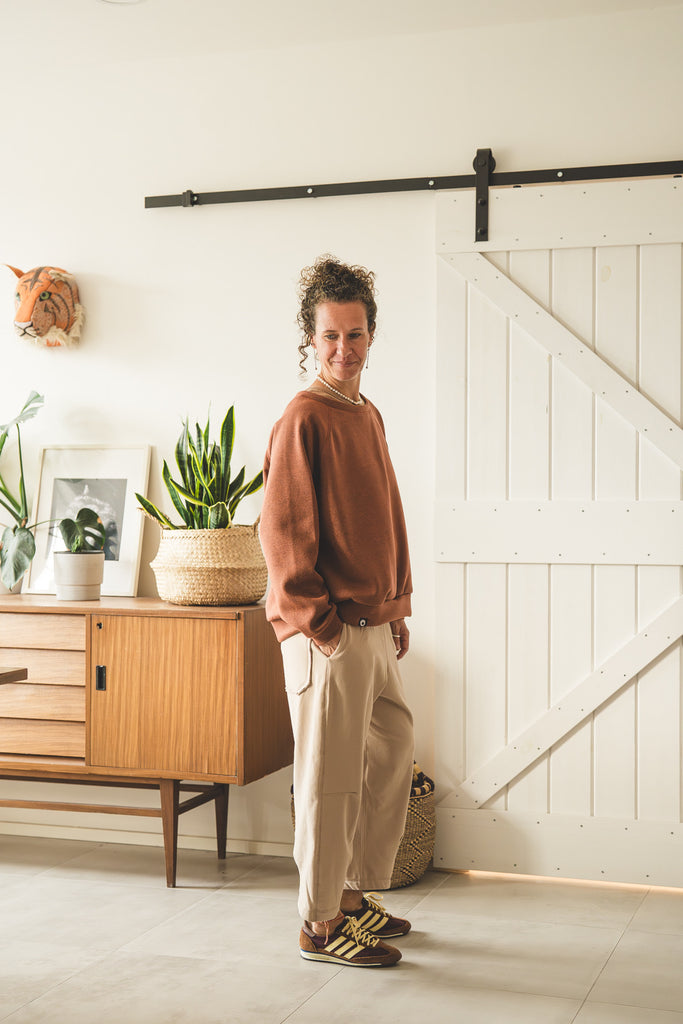 La /'ampjo/ - la nostra felpa del look OVER. L'abbiamo voluta con linee essenziali, ha le maniche raglan, nessuna stampa e ha una curva leggermente più lunga dietro che davanti. Un capo che ti mette a tuo agio. Ti coccola. Ti tiene sotto la sua ala.