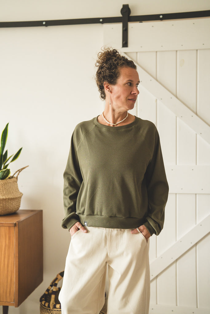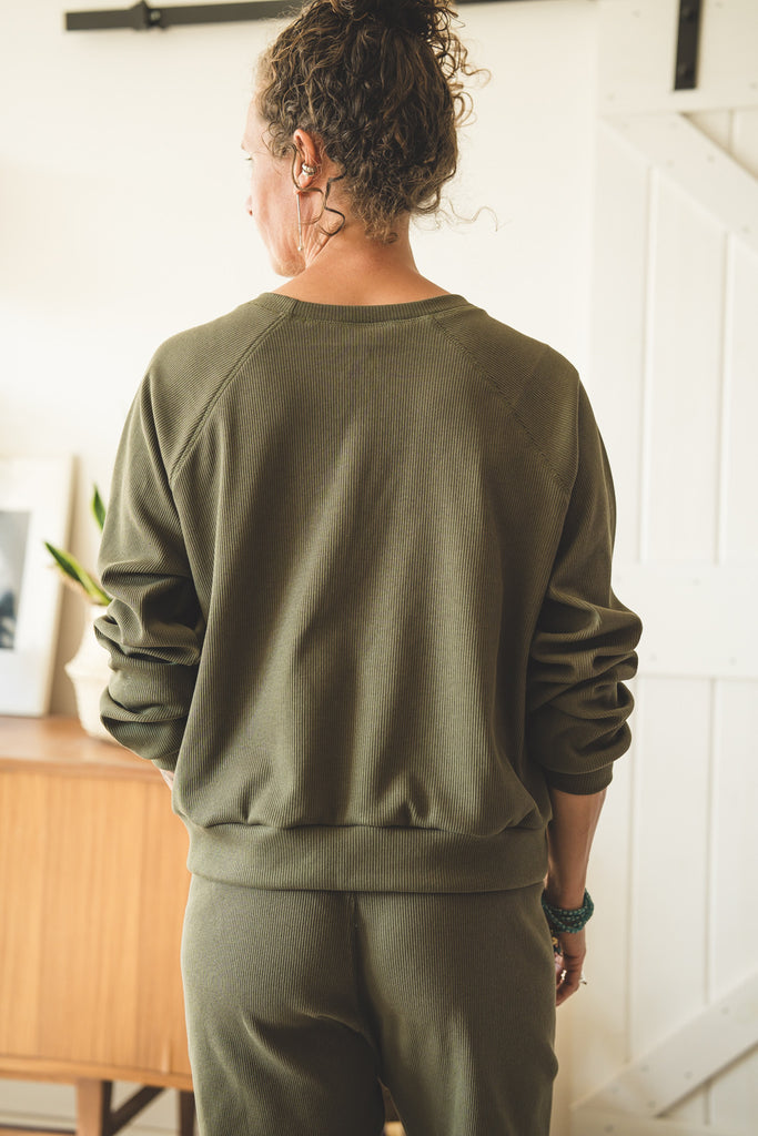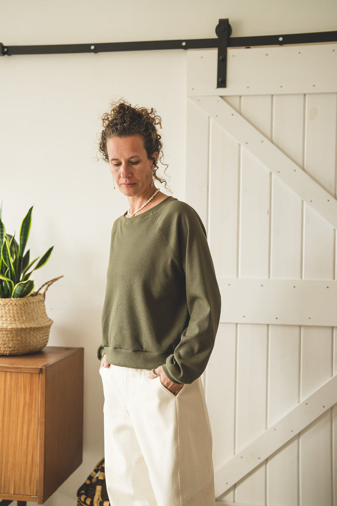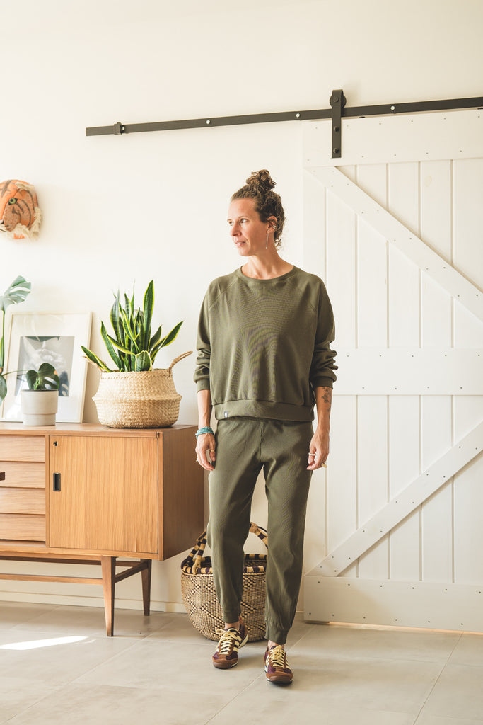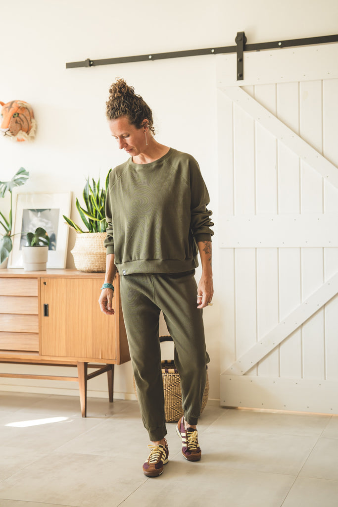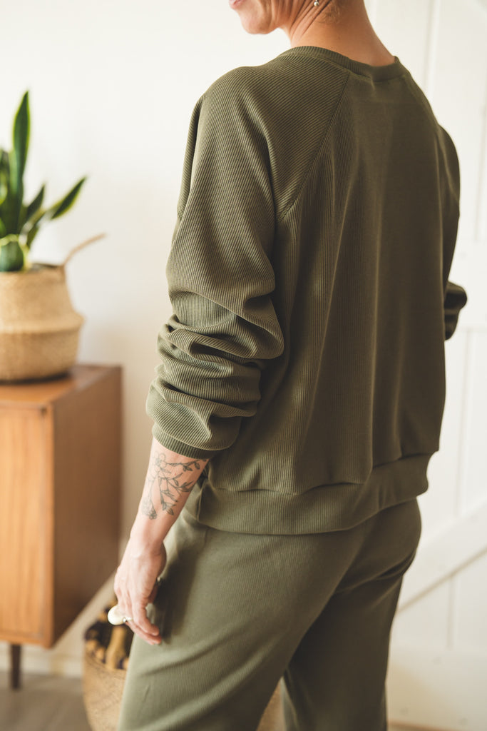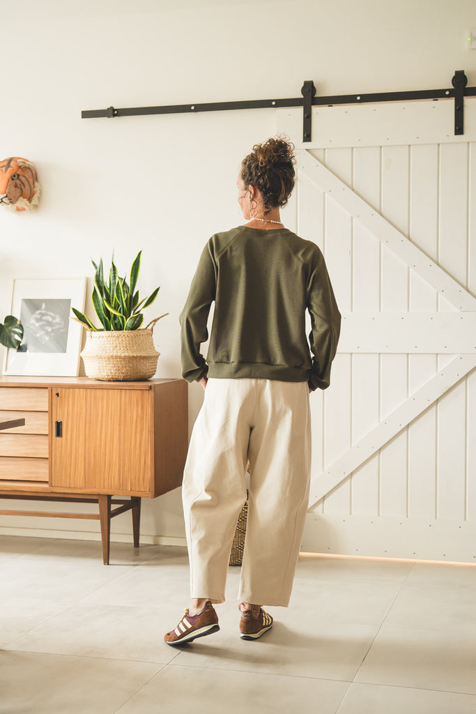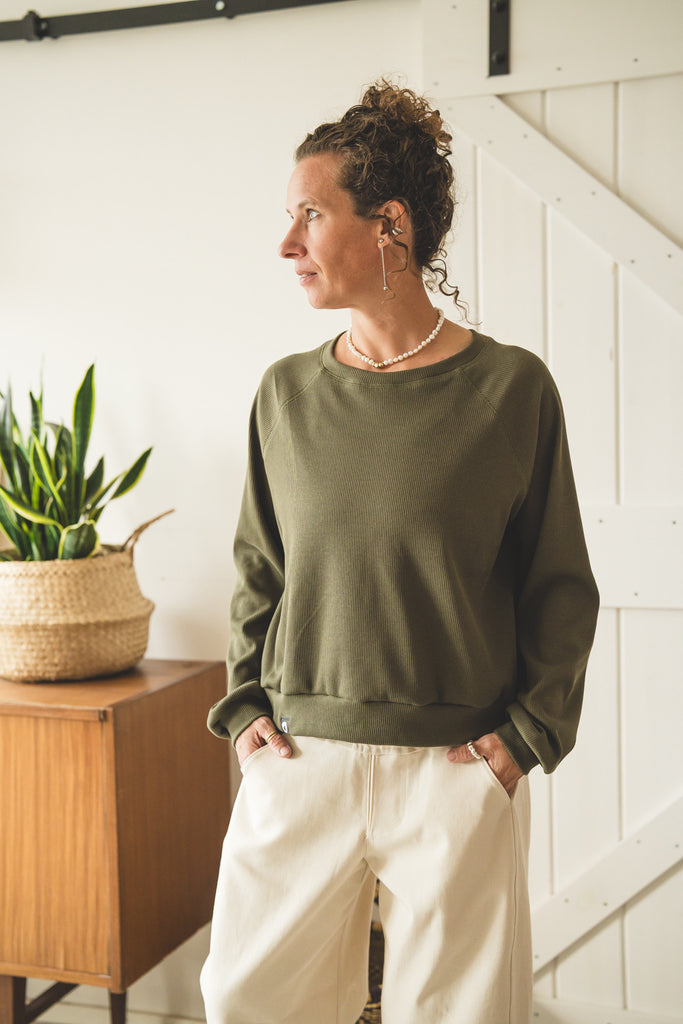 La Ribbed Sweat è perfetta da abbinare ai pantaloni Chakrini e ai RelaxedPants. Comfort totale. La vestibiltà è ampia, modello raglan.