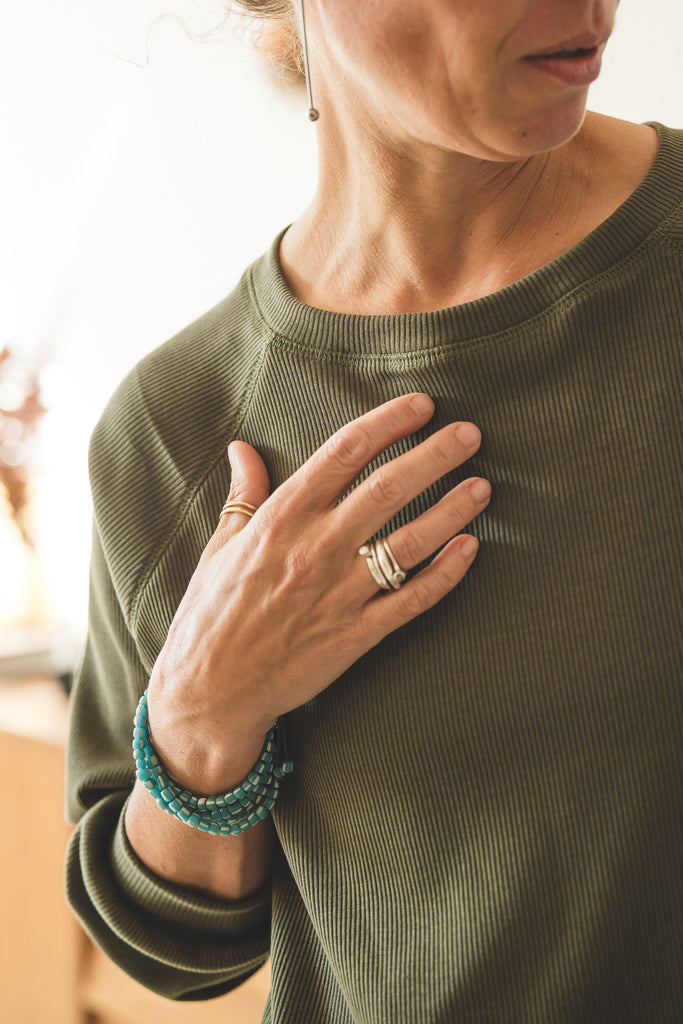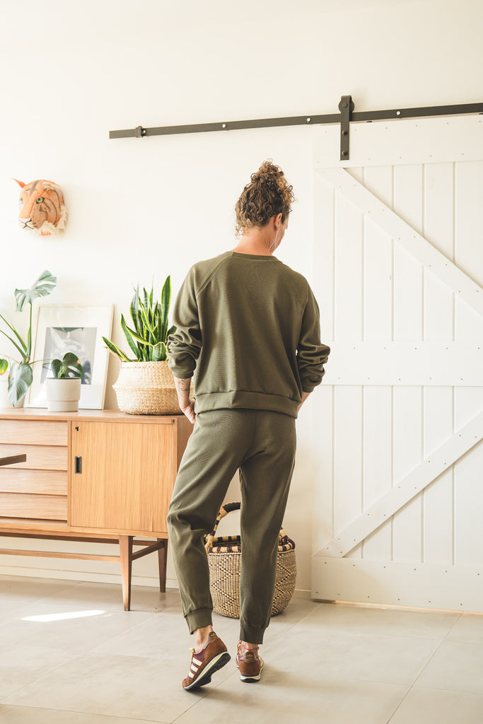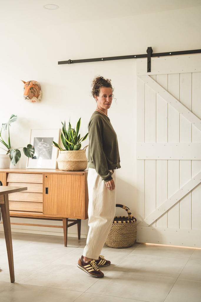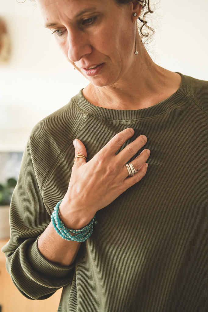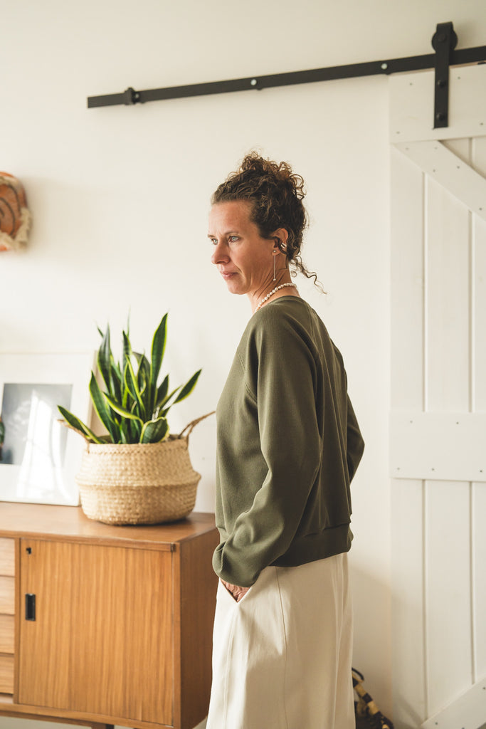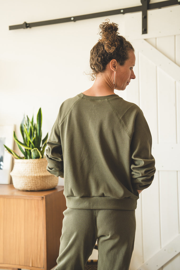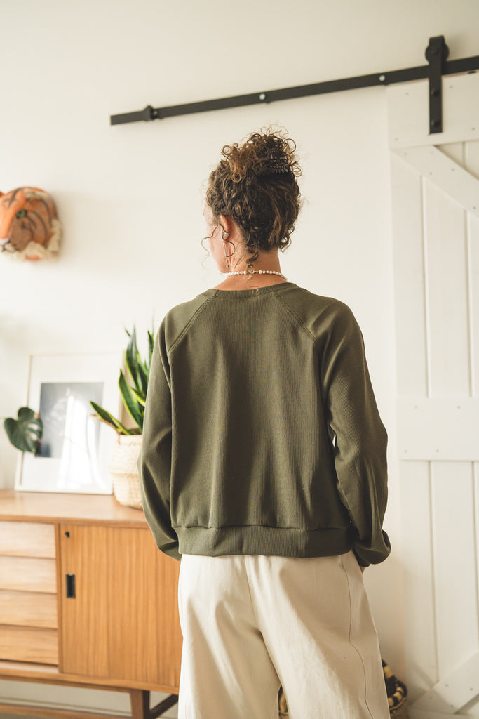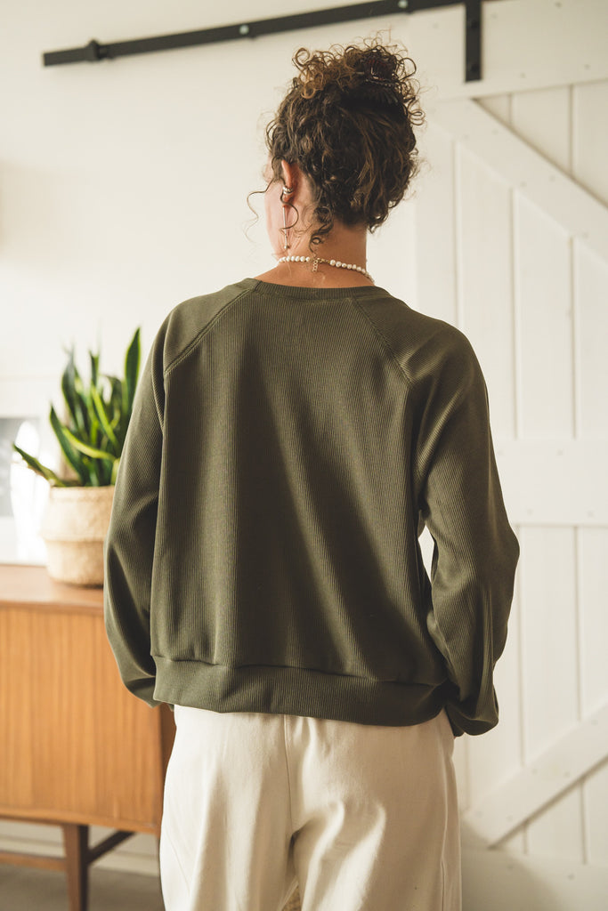 La Ribbed Sweat è perfetta da abbinare ai pantaloni Chakrini e ai RelaxedPants. Comfort totale. La vestibiltà è ampia, modello raglan.
