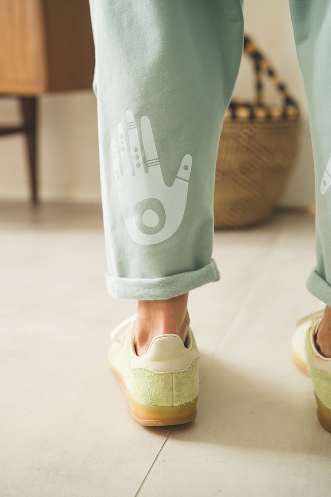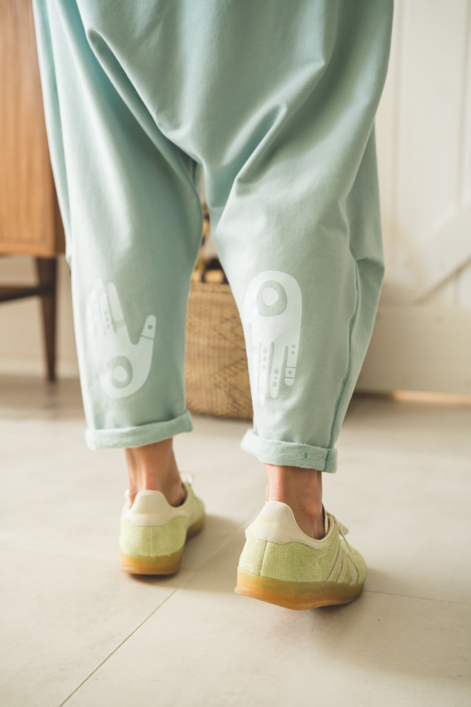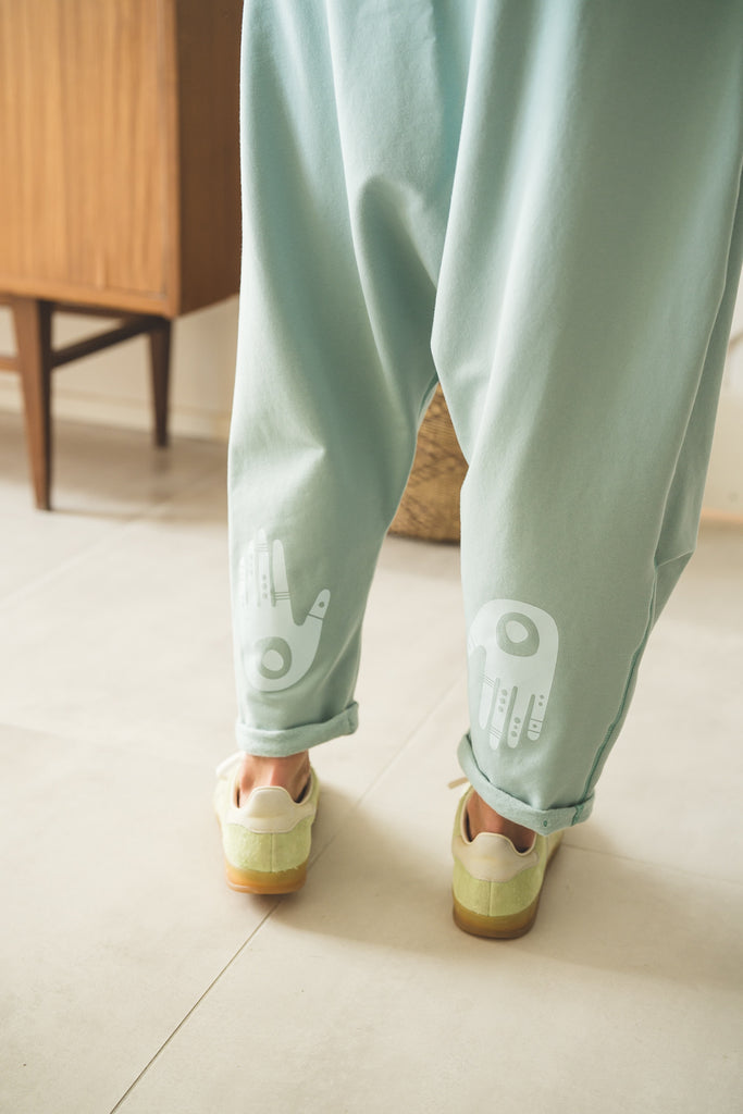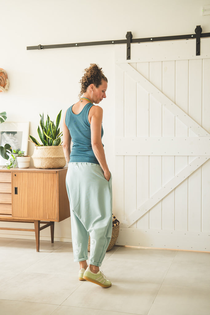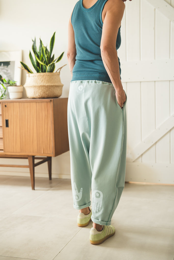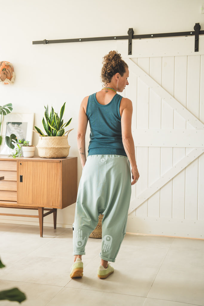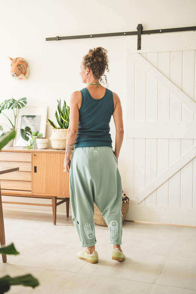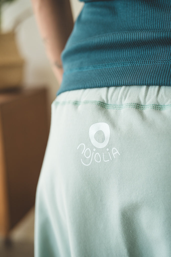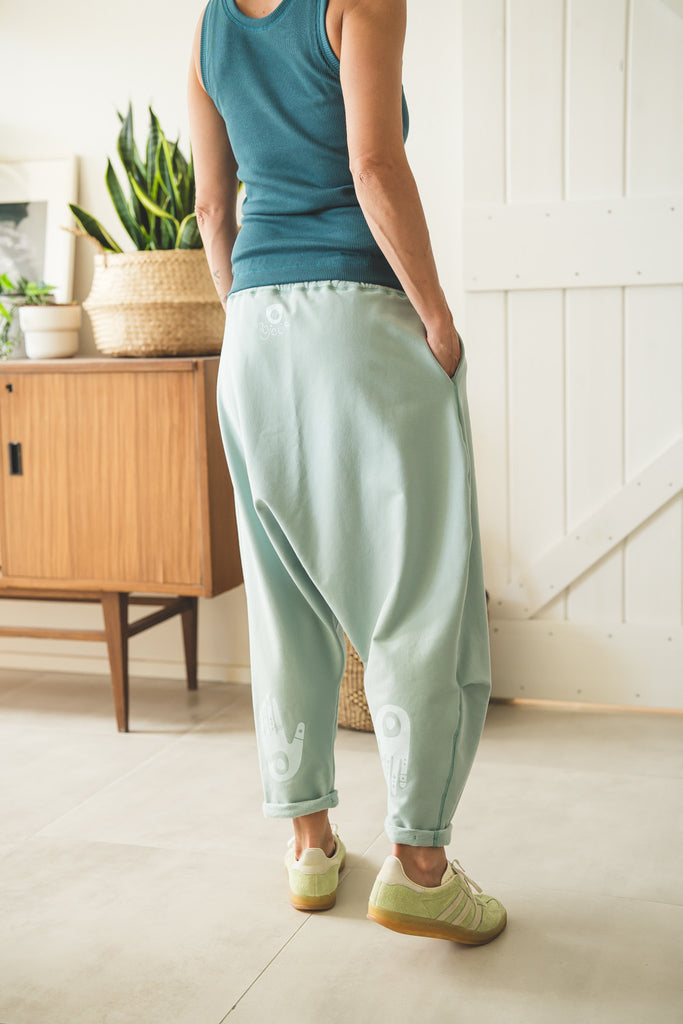 Il KoiPants cade morbido sui fianchi, ha il cavallo basso, l’elastico in vita e due tasche nascoste laterali.