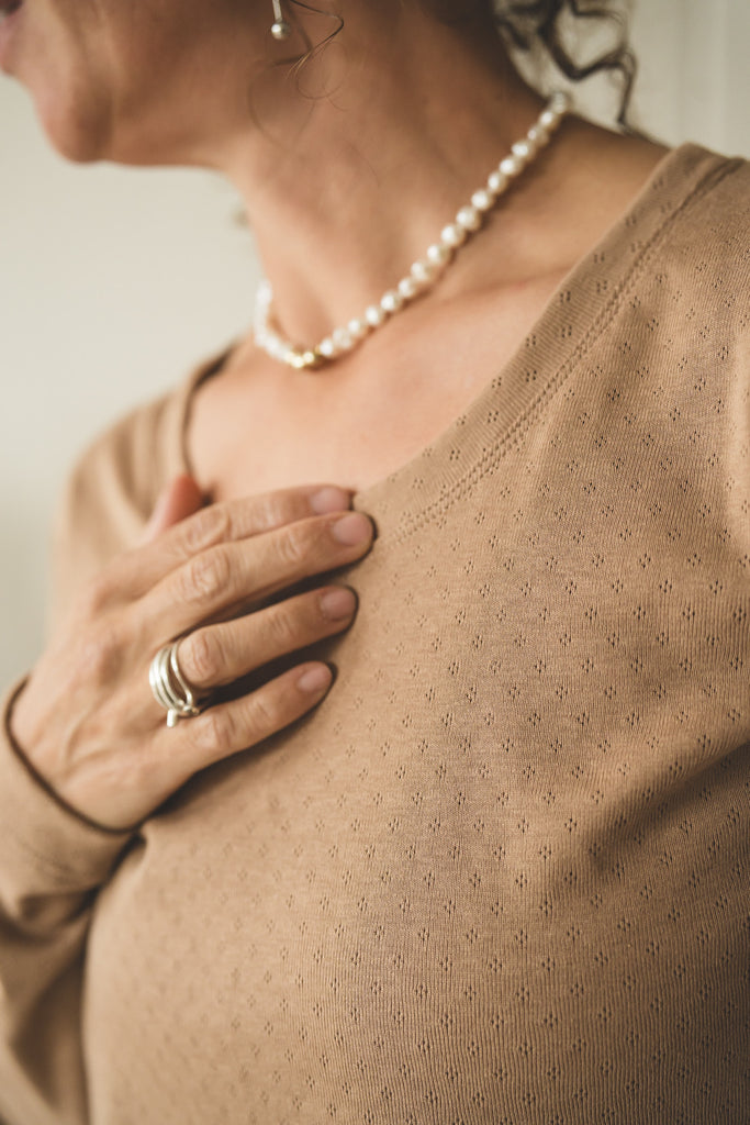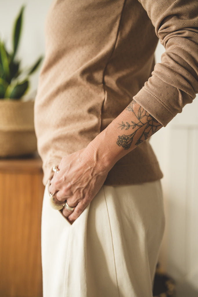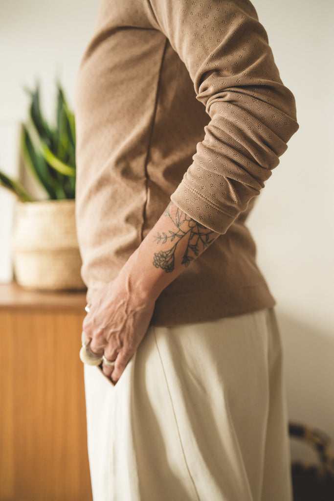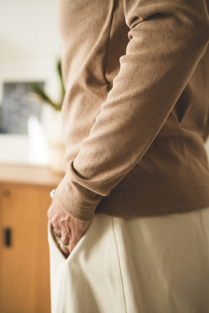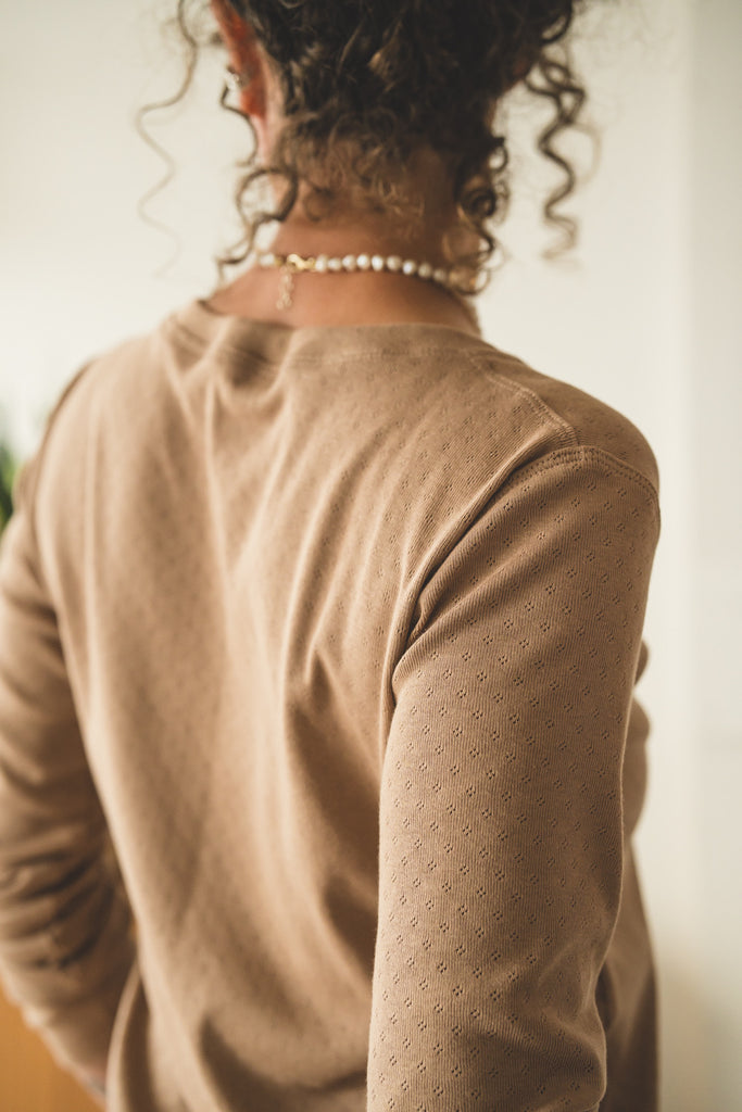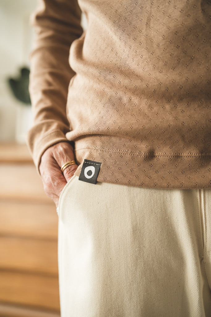 Tessuto in jersey 100% cotone certificato OekoTex 100. Il tessuto Pointoille ha un piccolo disegni a buchetti con una leggera trasparenza.