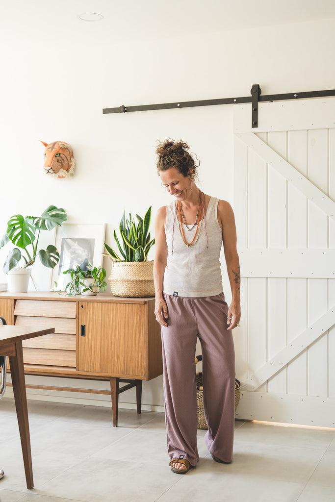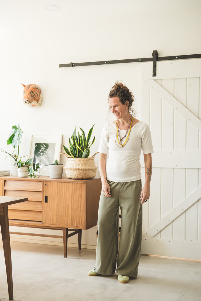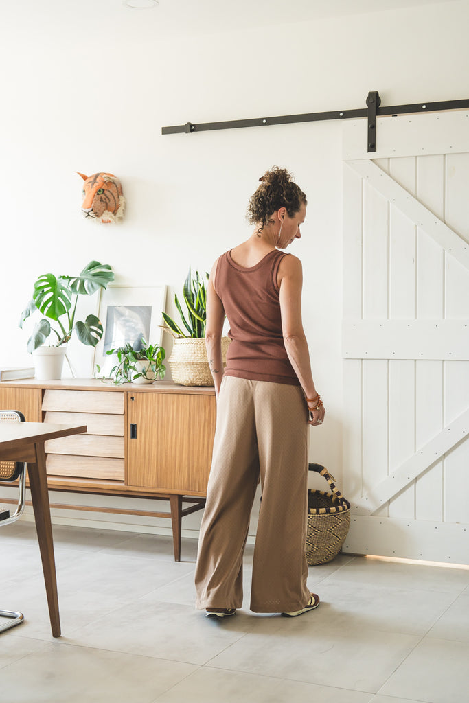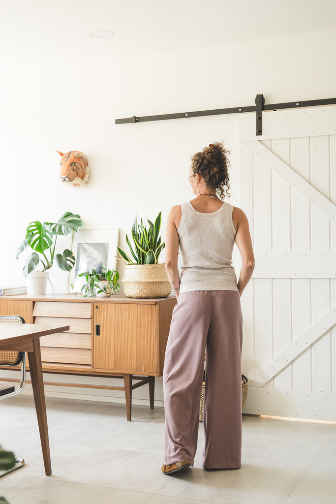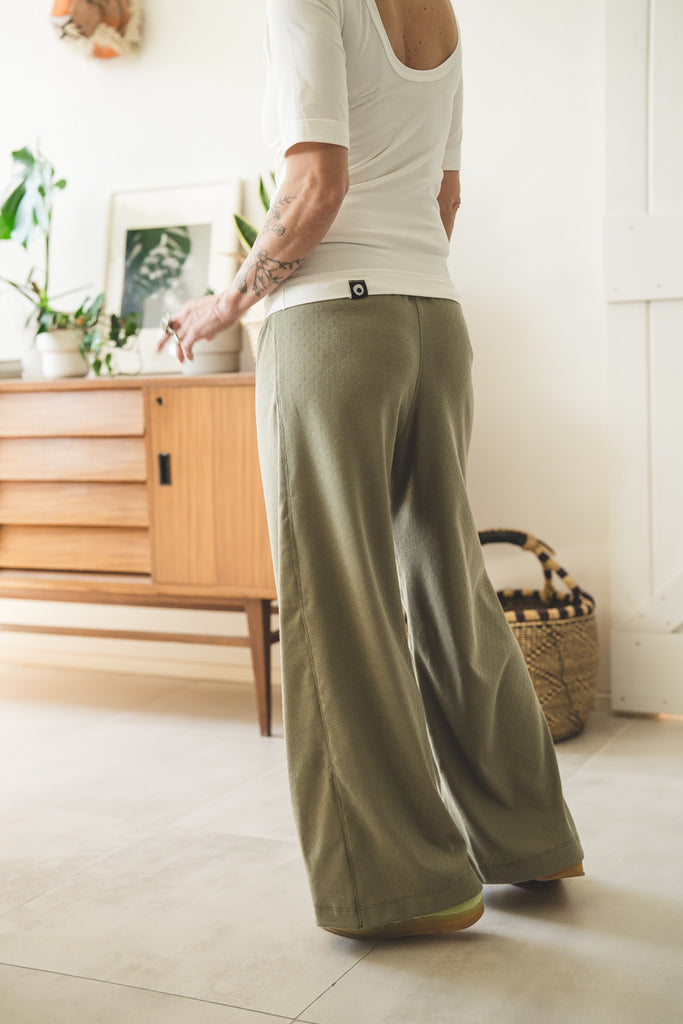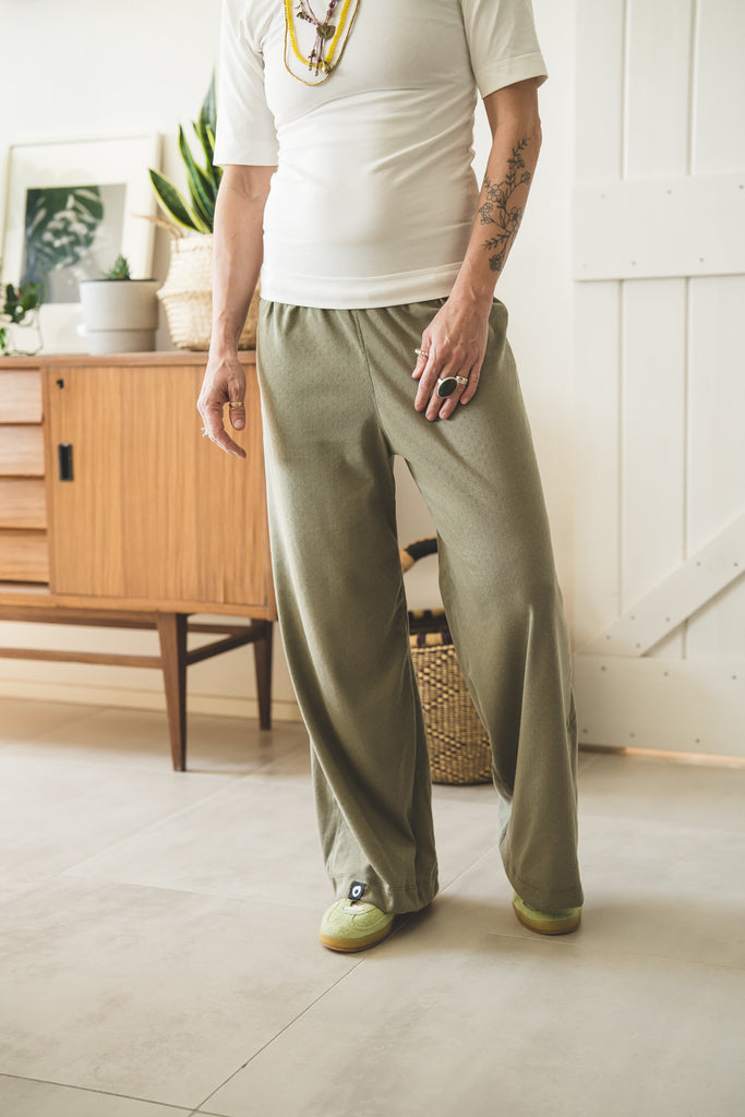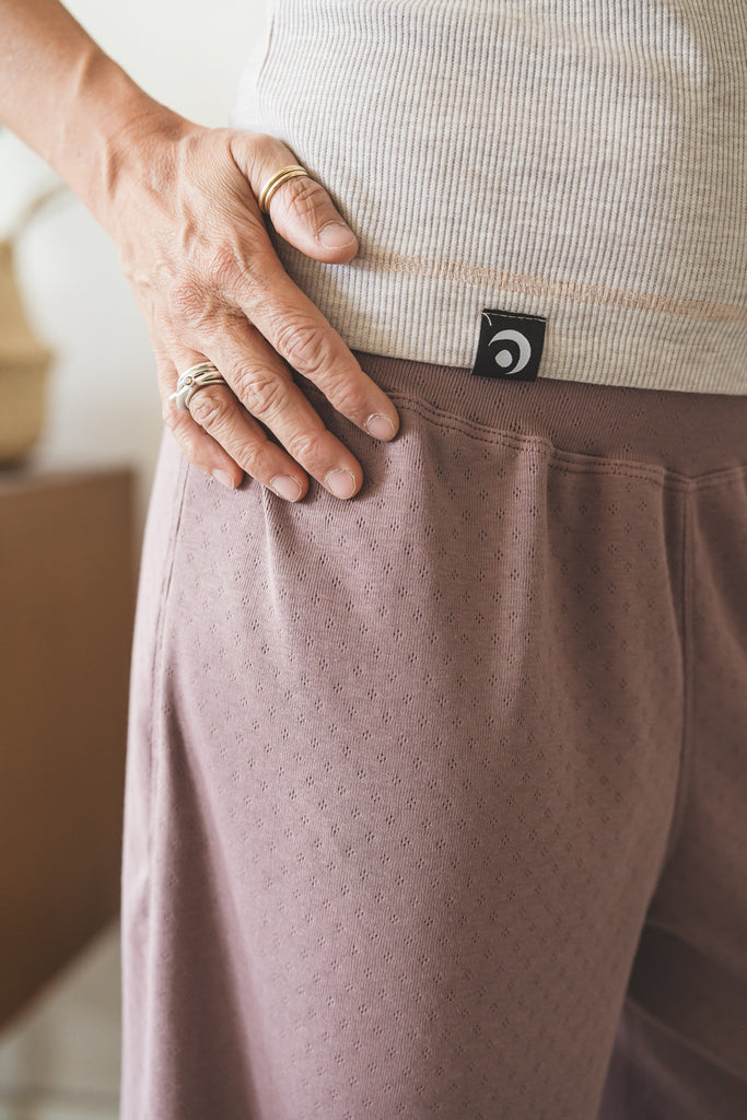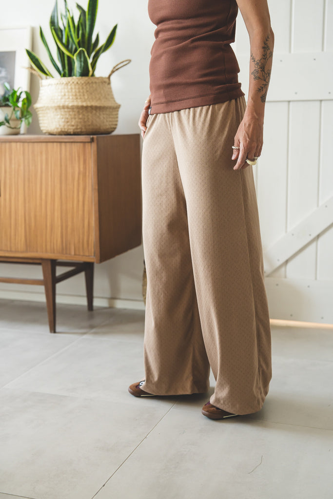 Il nostro modello RelaxedPants in tessuto Pointoille - jersey leggero e super morbido oltre ad essere 100% cotone. Pantalone a palazzo come vanno moltissimo proprio adesso. Il modello cade fluido e un pò svolazzante, ha la gamba extra lunga (per creare quell'effetto della gamba iiiinfinita) e può essere indossato anche a vita alta.