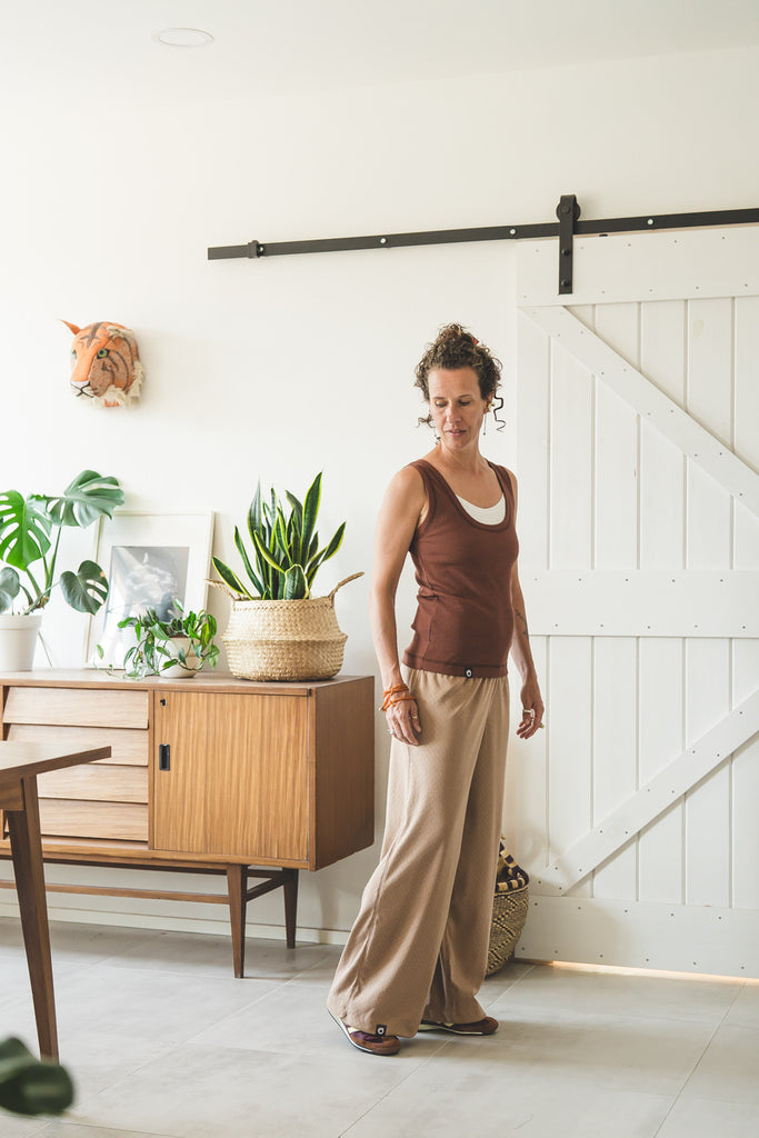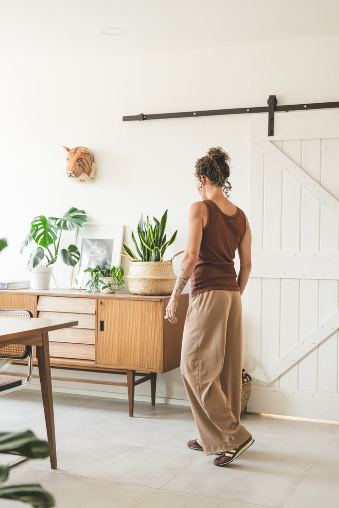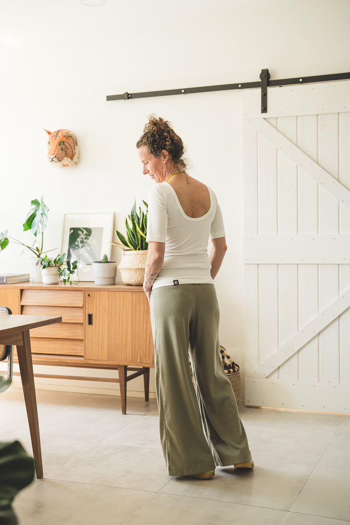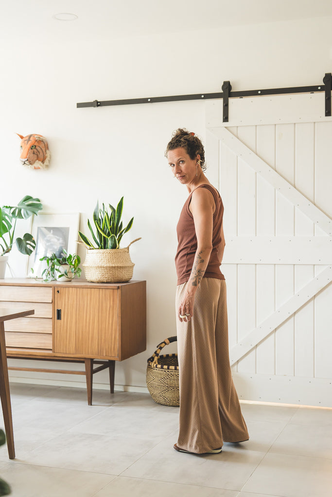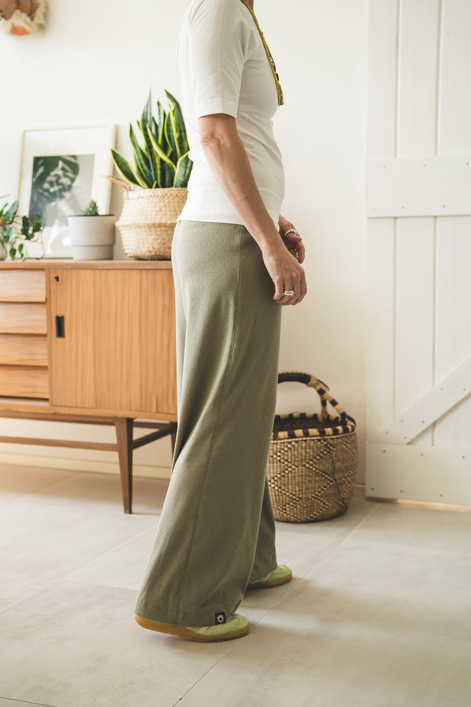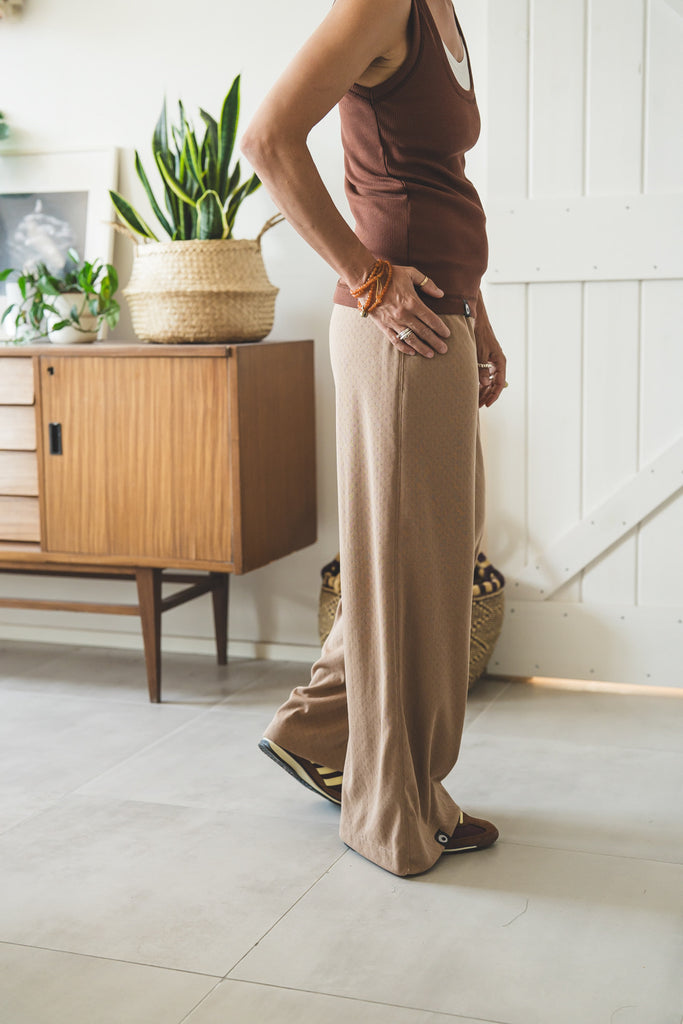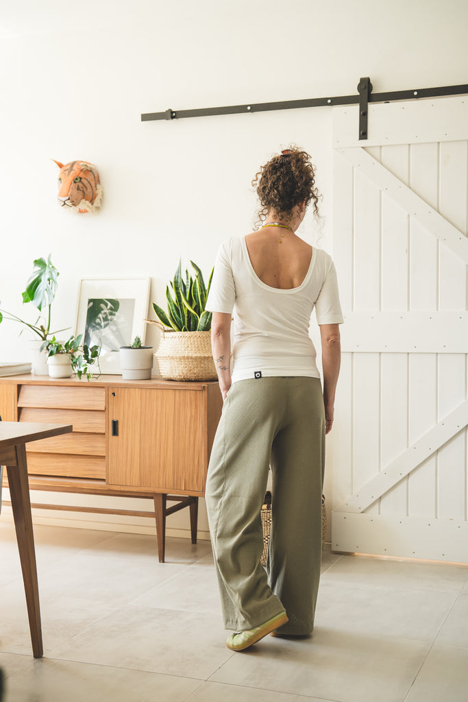 Il nostro modello RelaxedPants in tessuto Pointoille - jersey leggero e super morbido oltre ad essere 100% cotone. Pantalone a palazzo come vanno moltissimo proprio adesso. Il modello cade fluido e un pò svolazzante, ha la gamba extra lunga (per creare quell'effetto della gamba iiiinfinita) e può essere indossato anche a vita alta.