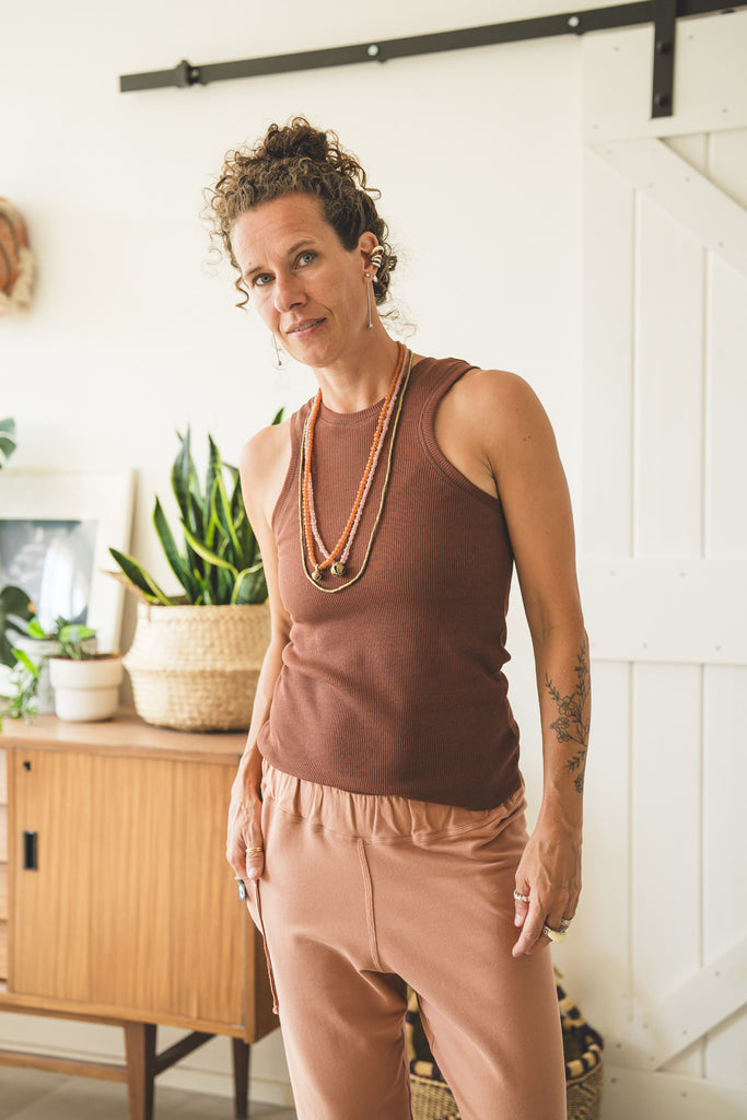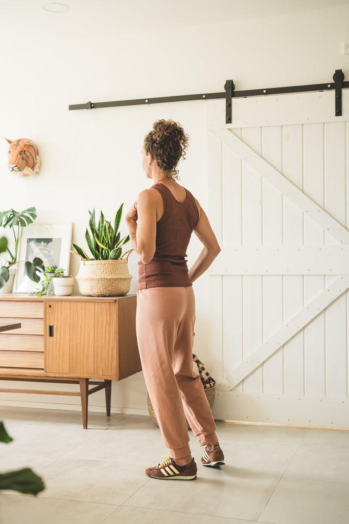 Il nostro iconico modello TANK in versione Ribbed. La canotta può essere indossata in entrambi i versi, con la parte stretta davanti e lo scollo dietro oppure viceversa.