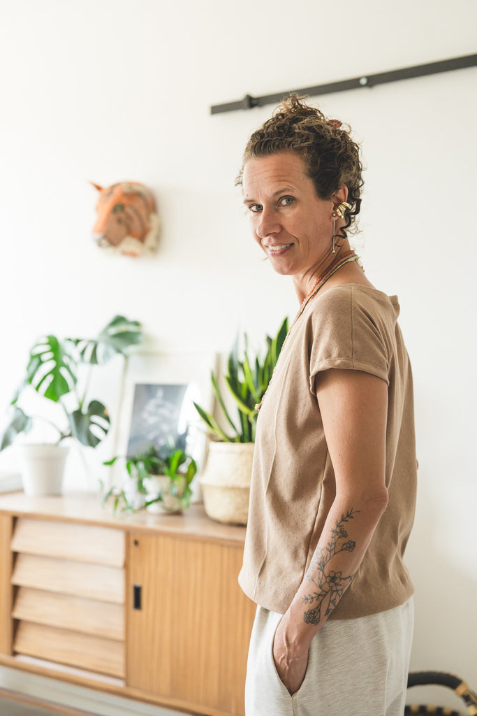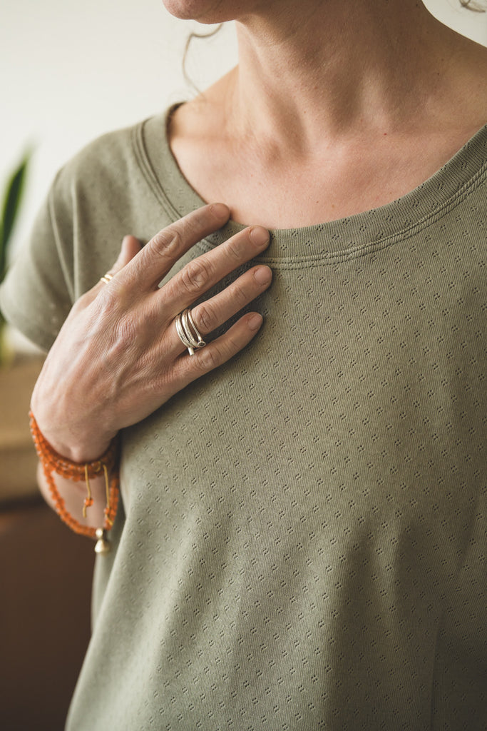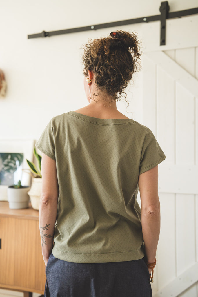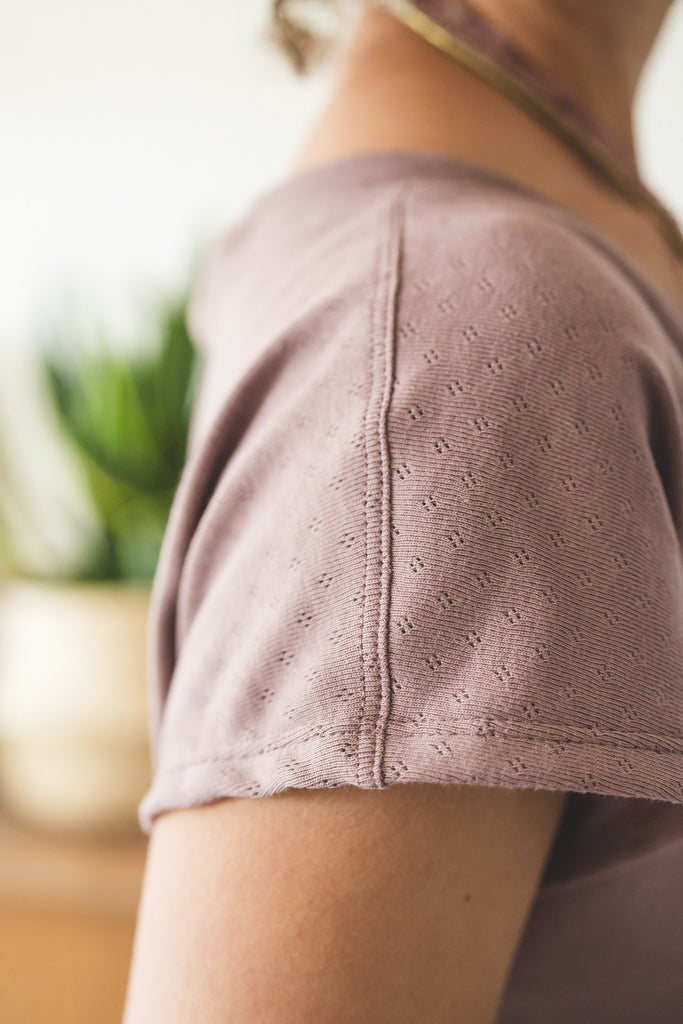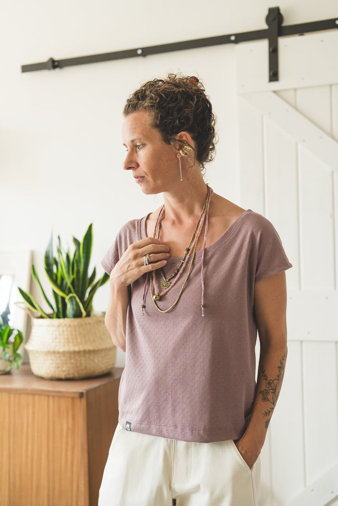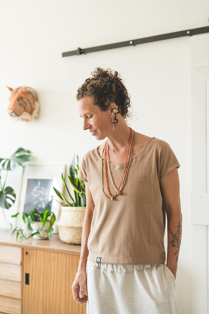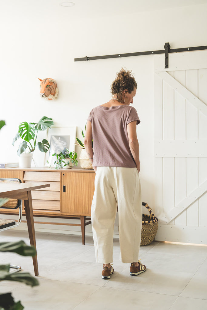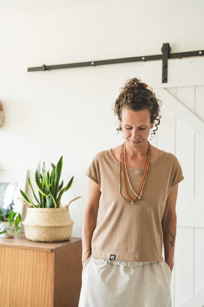 Il tessuto è jersey composto da 95% cottone e 5% elastane, certificato OekoTex Standard 100.