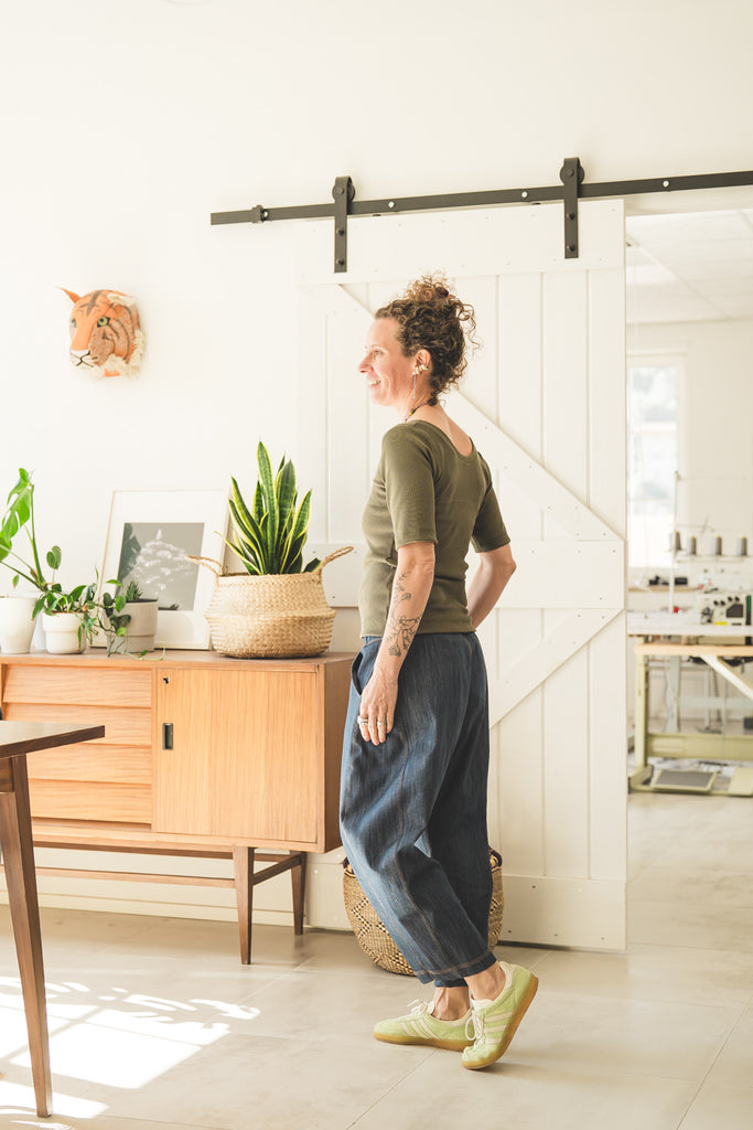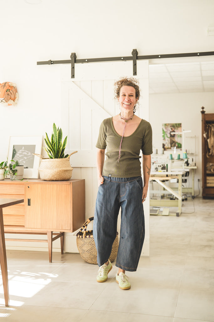 Il tessuto è rib jersey a coste larghe ed è composto da 95% cottone e 5% elastane, certificato OekoTex Standard 100.