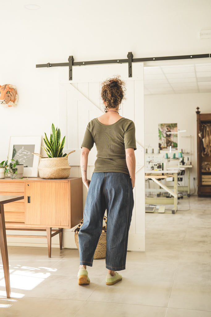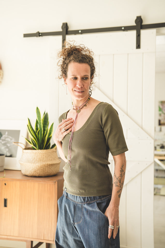 Un capo semplice e estremamente versatile. La Versione Ribbed è in tessuto jersey ribbed anziche in jersey liscio.