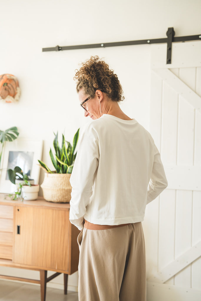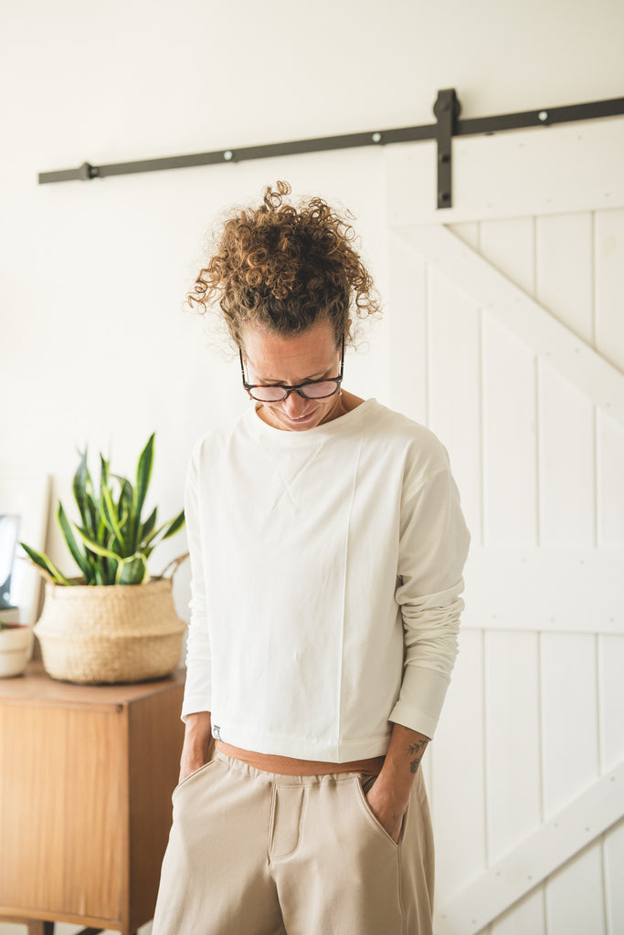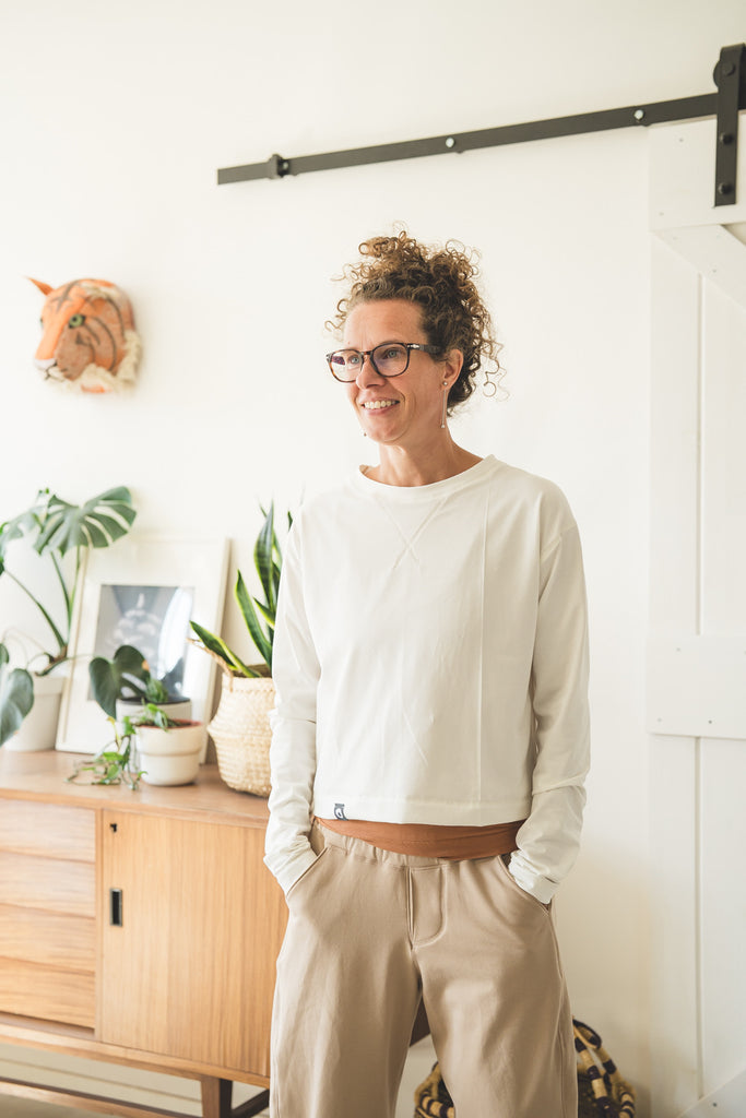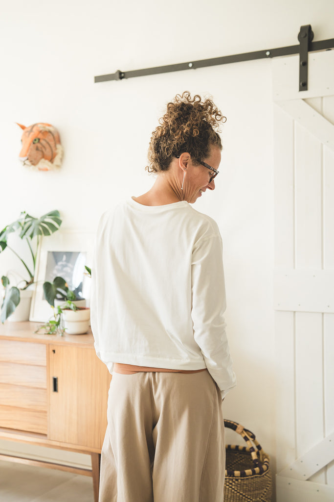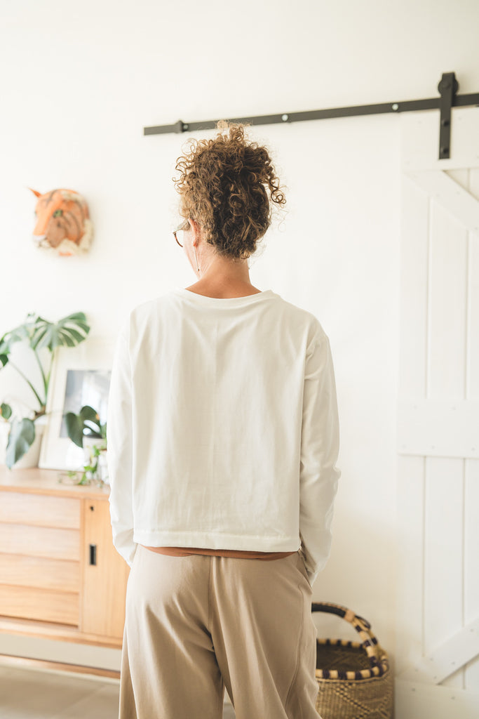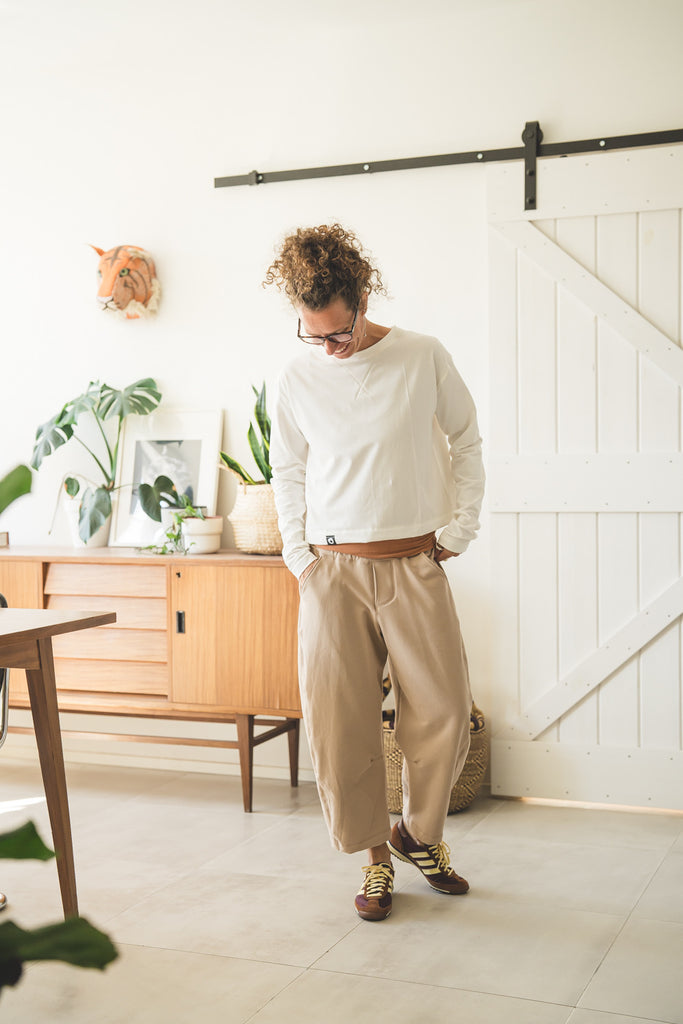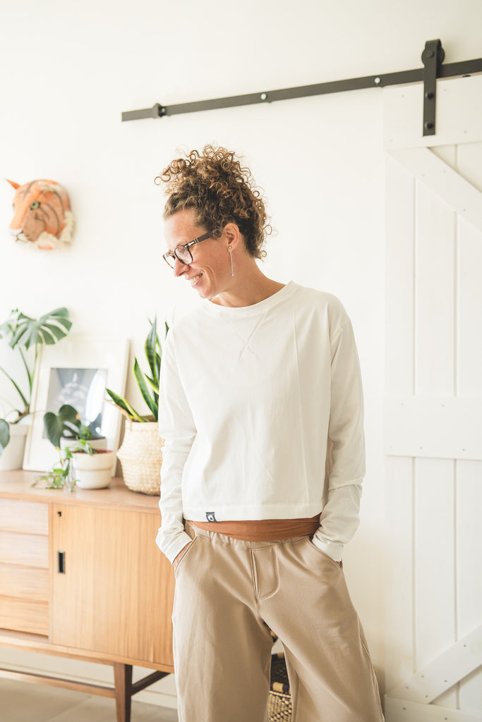 Questo modello di tShirt a maniche lunghe ha un fit largo e corto, si presta particolarmente per fisici morbidi, in quanto si ferma ad altezza creste iliache. Quindi non mette in mostra la pancia, ma lascia a vista il sedere che serve per non togliervi la vostra forma (non nasconderlo maaaai :)