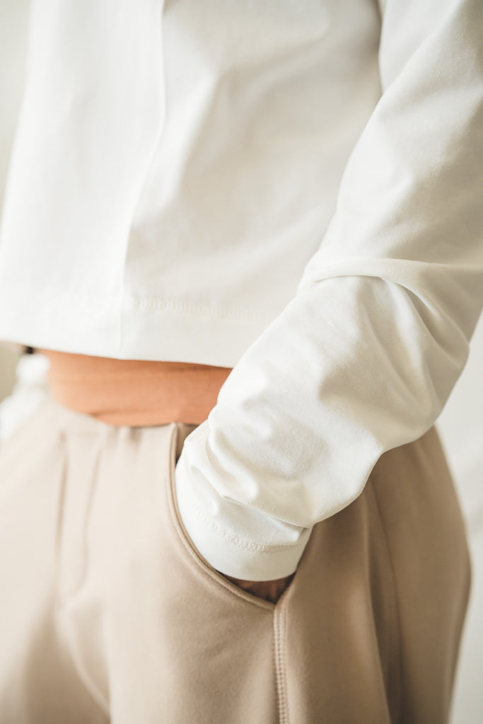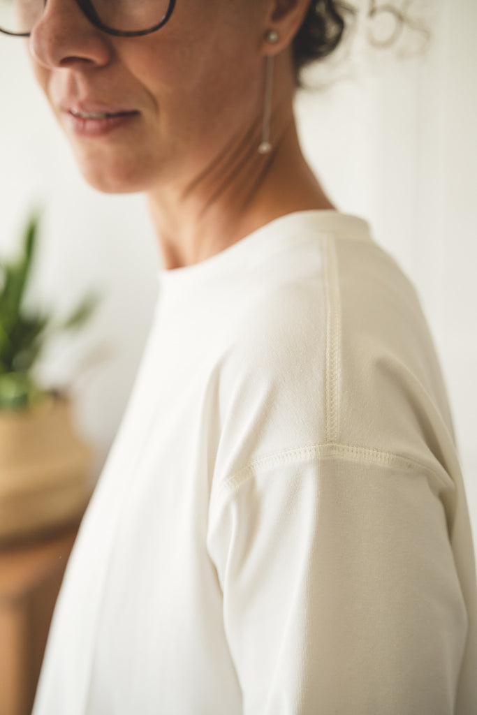 Il tessuto è jersey composto da 95% cottone e 5% elastane, certificato OekoTex Standard 100.